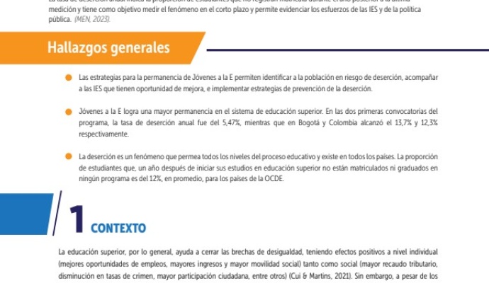 Fecha de emisión Lun, 27/05/2024 - 08:17 Información de la entidad Documentos internos Archivos Deserción en la educación superior en Bogotá