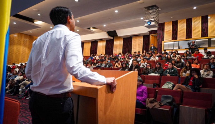 El director de Atenea dijo a los estudiantes: “estoy muy feliz de darles la bienvenida a este programa Jóvenes a la E, a la Universidad Externado de Colombia. Esta es una oportunidad que se les está abriendo. Es una inversión enorme que hace la ciudad de Bogotá y esperamos que aprovechen esta oportunidad… en Colombia tenemos enormes retos y los necesitamos a ustedes".