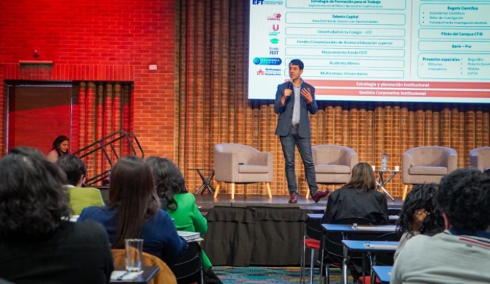 Durante el conversatorio, se abordarán las oportunidades y desafíos que plantea la inteligencia artificial en los procesos de enseñanza, aprendizaje y diseño de soluciones digitales en el contexto educativo de Bogotá.