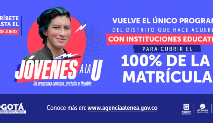 Hasta el 20 de junio, la Agencia Distrital para la Educación Superior, la Ciencia y la Tecnología-Atenea abre inscripciones a esta convocatoria para que bachilleres de la ciudad de hasta de 28 años, puedan acceder a programas de educación superior en Bogotá de manera gratuita y sin endeudamiento.