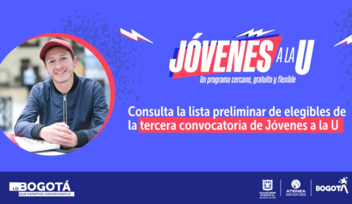 Jóvenes a la U es un programa de acceso y permanencia en la educación superior, 100% gratuito, en el que la Secretaría de Educación del Distrito, la Agencia para la Educación Superior, la Ciencia y la Tecnología- ATENEA-, los Fondos de Desarrollo Local-FDL y las Instituciones de Educación Superior, realizan los aportes necesarios para cubrir la matrícula de los beneficiarios en los programas que fueron admitidos en las diferentes Instituciones de Educación Superior públicas y privadas. Así mismo, los jóvenes reciben un apoyo monetario, equivalente a un salario mínimo legal vigente por cada semestre académico que cursen, para favorecer su continuidad en los programas de educación superior.