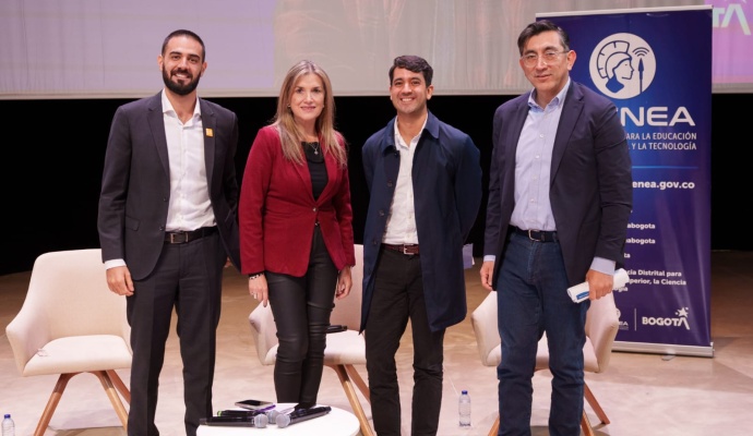 La agenda incluyó un diálogo sobre tendencias globales en habilidades, formación de talento y soluciones EdTech, con participación de Esteban Veintimilla, director de producto, alianzas y empleabilidad en QS Quacquarelli Symonds; Mónica Contreras Esper, presidenta TGI Grupo Energía Bogotá, Diego Molano, presidente ETB y moderación de Víctor Saavedra, director de la Agencia Atenea.